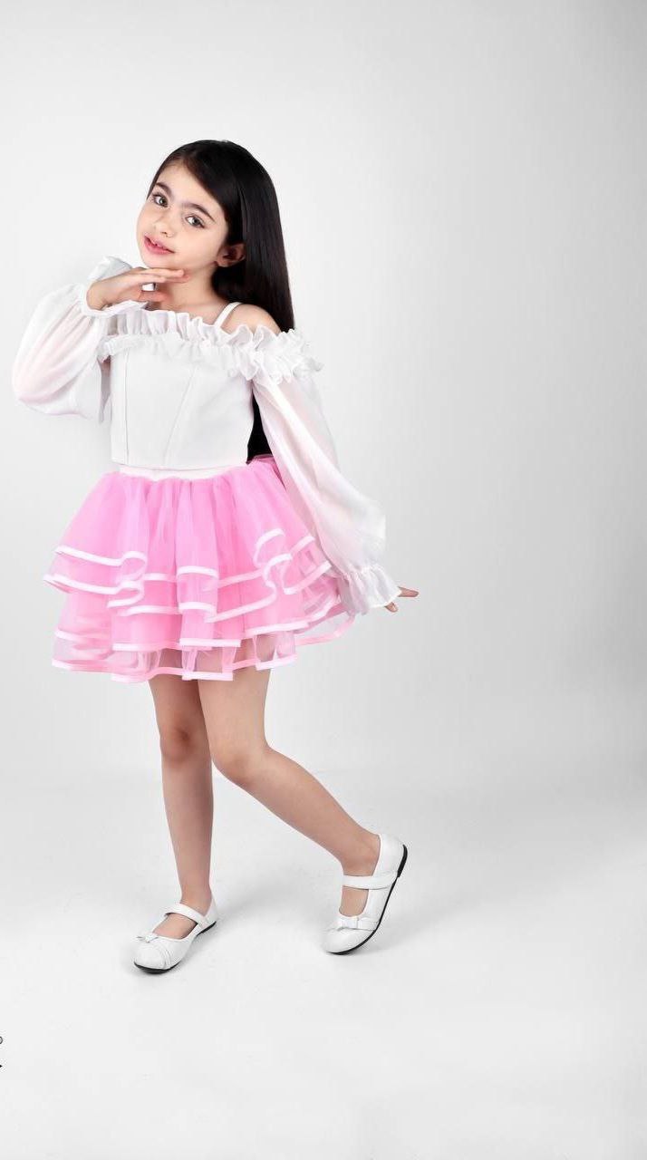 کراپ بچگانه آستین تور مازراتی طراحی مجلسی تمام آستر