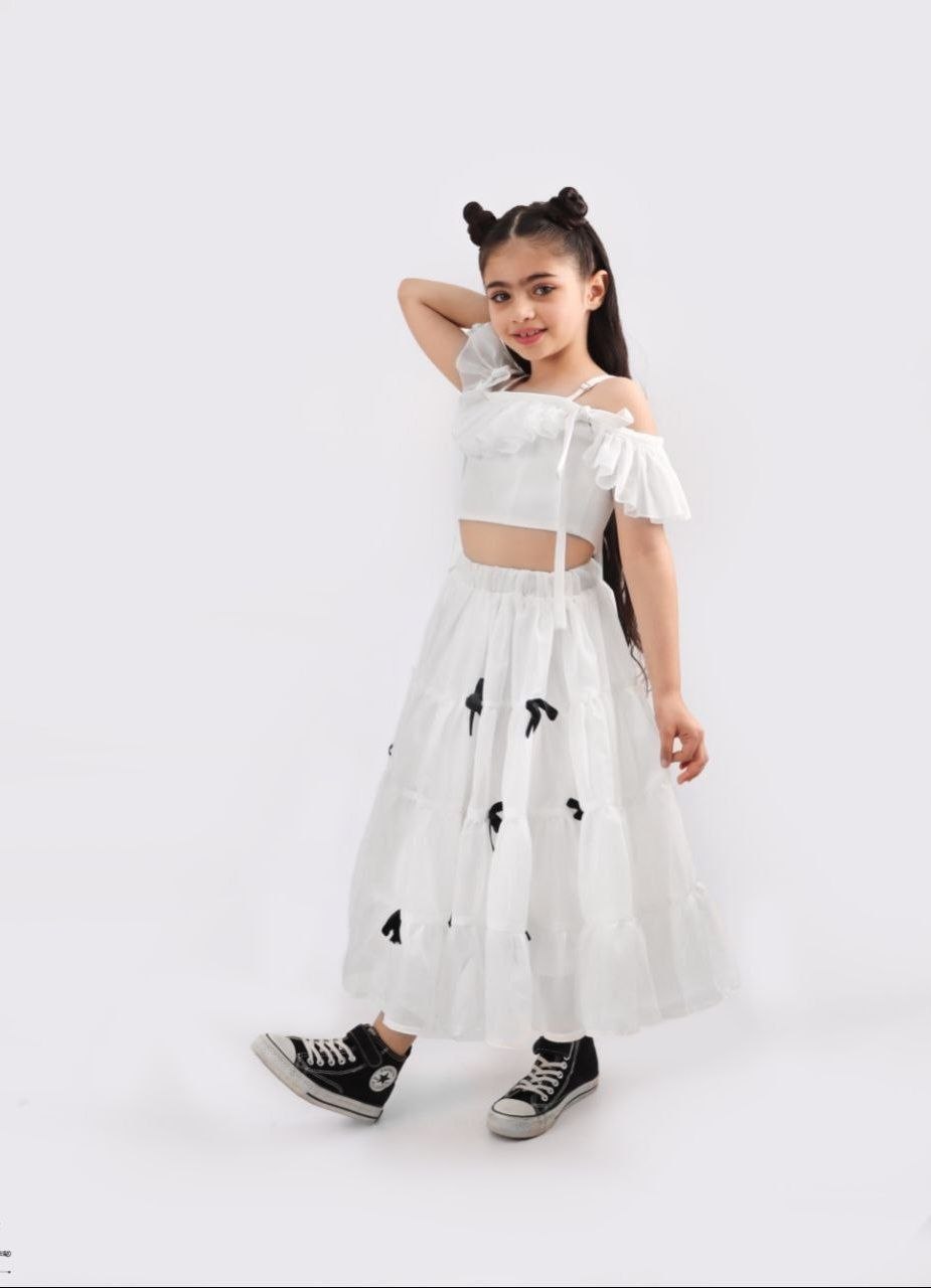 دامن بلند پاپیونی دخترانه حریر با استر تافته کمر کشی