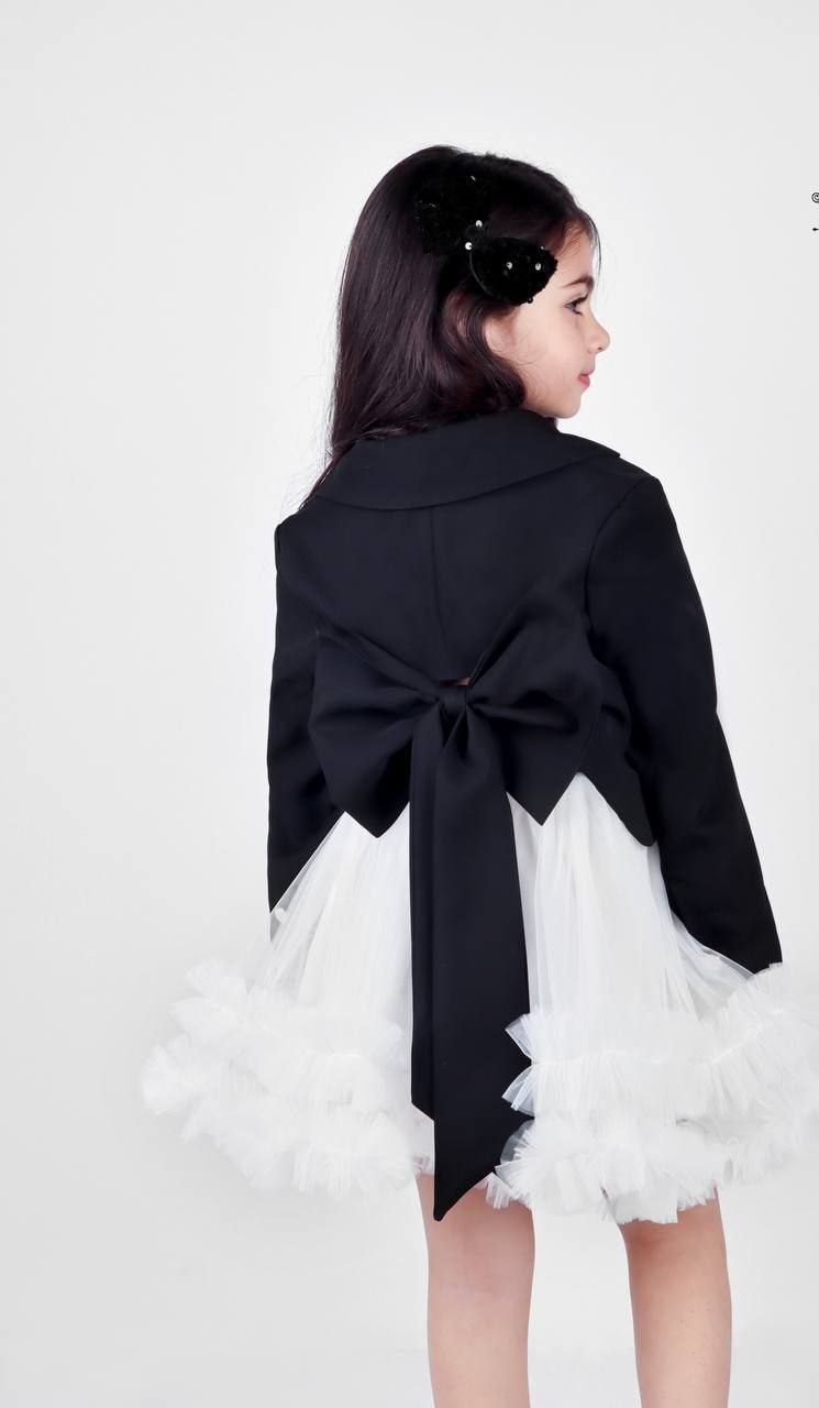 آستر پونژه در داخل کت باعث راحتی بیشتر شده و پاپیون کارشده در پشت کت، جلوهای عروسکی و بسیار جذاب به لباس داده است 🎀